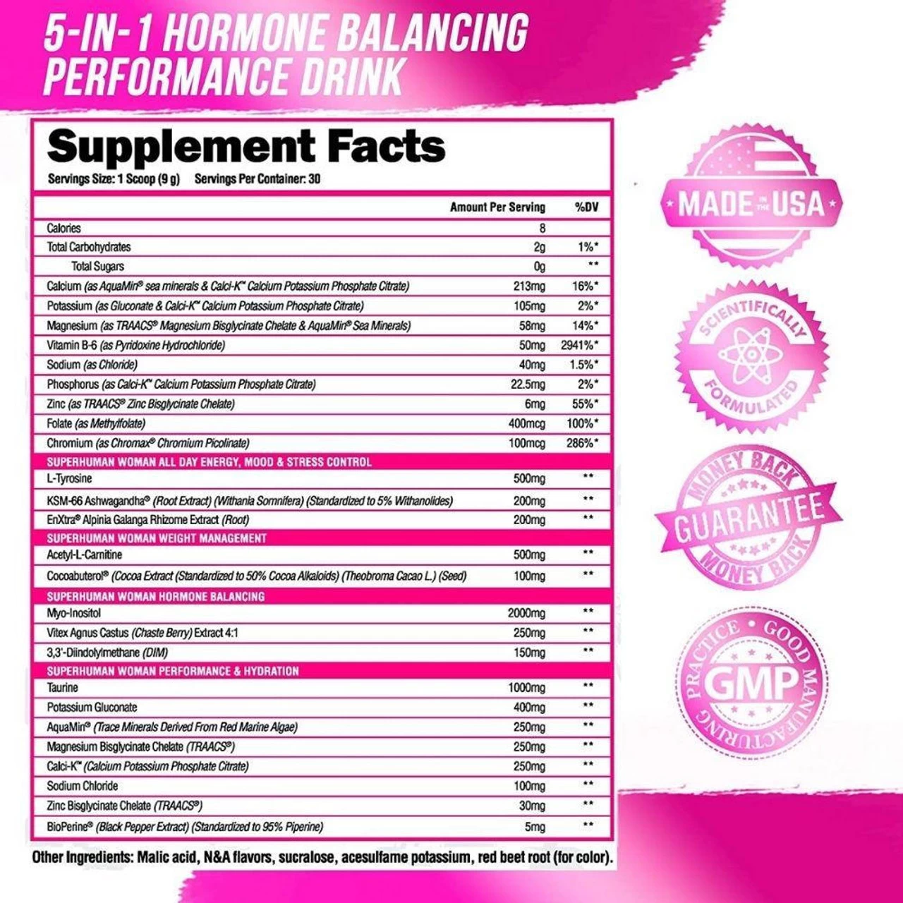 Alpha Lion Super Human Women is the Ultimate Hormone Balancing Performance Drink for Women. This 5 in 1 formula helps with weight management, energy levels, athletic performance, hydration and mood.