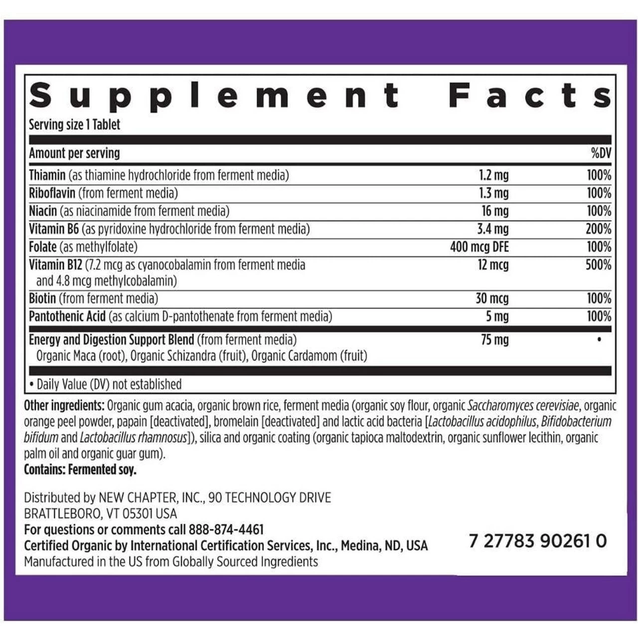 New Chapter Fermented Vitamin B Complex 90 Tablets Ingredients